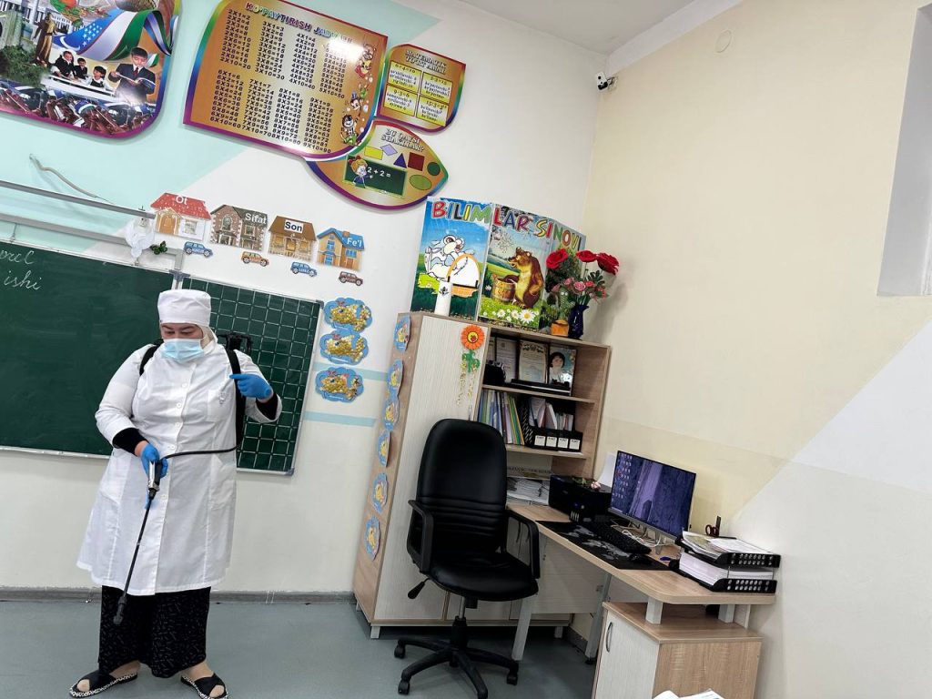 🟢Sanepidqoʻmita Toshkent shahar boshqarmasi Yakkasaroy tuman boʻlimi dezinfeksiya tadbirlari bo’limi xodimlari tomonidan o’tkir ichak kasalligi aniqlangan 73-sonli maktabda dezinfeksiya tadbirlari amalga oshirildi.