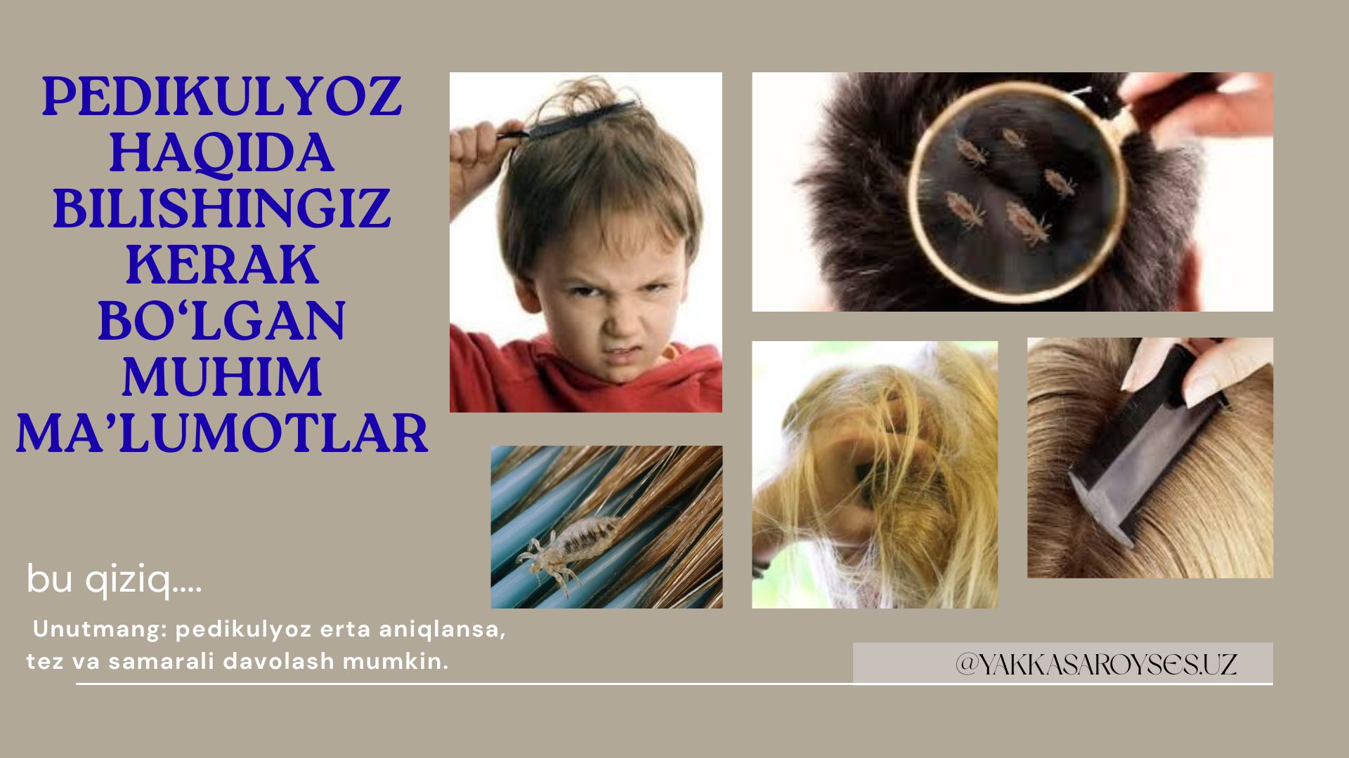 🧾 Pedikulyoz – bu bitlar keltirib chiqaradigan yuqumli parazitar kasallik bo‘lib, asosan bosh sochlarida, kiyimlarda yoki qov sohasida uchraydi. U odamdan odamga tez yuqadi va gigiyena qoidalariga rioya qilmaslik natijasida keng tarqaladi.