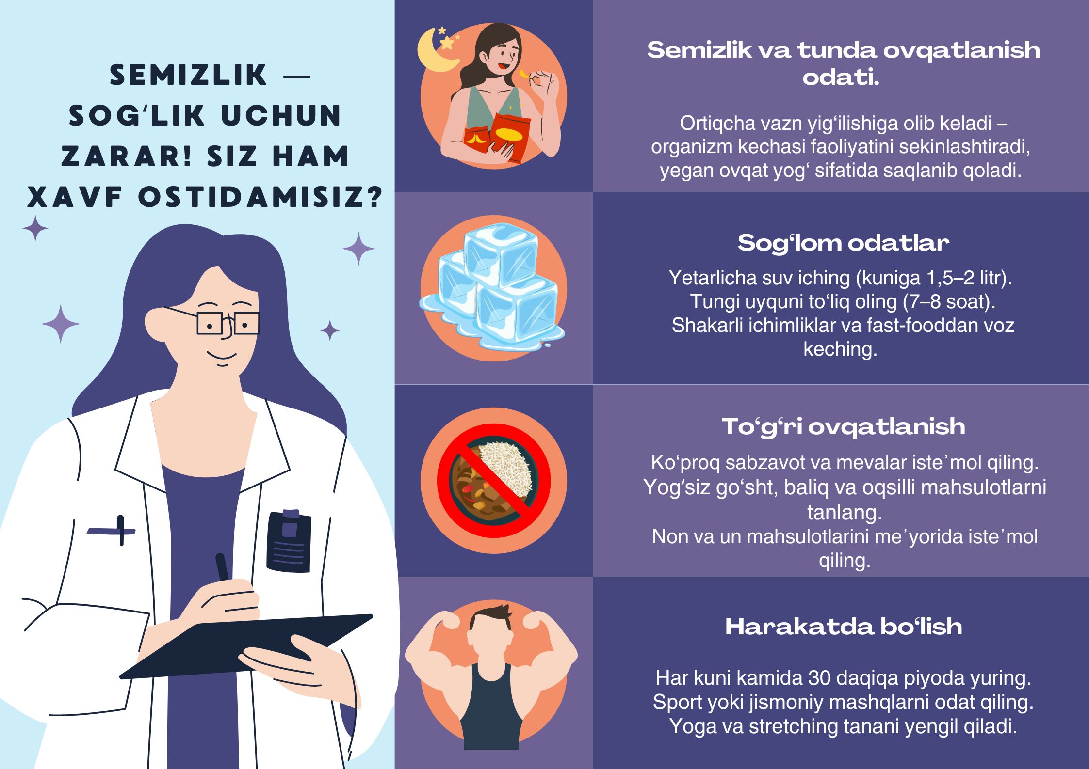 👉 Esda tuting! Har bir ortiqcha kilogramm — kelajakdagi kasalliklarga ochiq eshikdir.