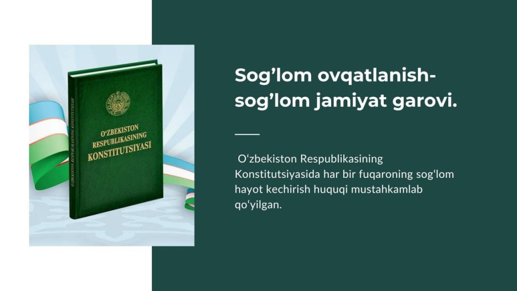 🟢 Har bir inson sog‘lom va faol hayot kechirish uchun sifatli, xavfsiz hamda yetarli miqdordagi oziq-ovqat mahsulotlariga ega bo‘lish huquqiga ega.